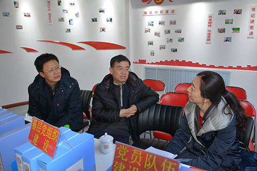 检查组随后来到学校党建活动室。王晓松书记向检查组领导详细介绍学校党建工作开展情况,并对党支部创立的“三同五新” (同研究、同部署、同落实;新时代、新铁人、新使命、新模式、新活力)工作思路进行详细解读。检查组对学校党组织建设、发展党员、党员示范岗、党员加油站、党建工作台账等党建资料进行仔细检查,并听取学校在党员发展中存在的实际问题和亟待上级解决的困难。期间,检查组领导与学校领导就学校发展和基层党组织建设等问题进行了深入而广泛的交流。通过督导检查,检查组对学校党建工作给与了充分的肯定,要求学校继续深化学习“两学一做”,把学校党建工作和教育教学有机结合,加强组织管理,增强针对性、时效性。以学习贯彻党的十九大精神为引领,注重品牌培养,将铁人学校党建工作提升到新的水平。